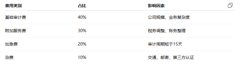 五、不同规模公司的审计费用对比(2025)