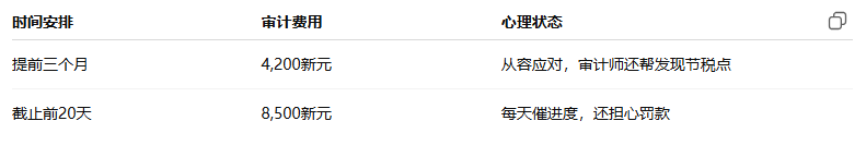在新加坡,审计费用并不是固定的,而是由时间、资料、业务复杂度共同决定。提前准备、找对人、保持账务整洁,是节省成本的唯一“捷径”。否则,你可能像Tom一样,为了赶时间多掏一大笔冤枉钱。