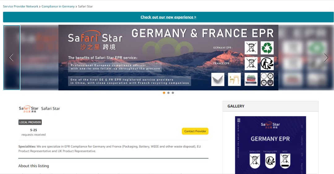 沙之星跨境是已经经过亚马逊审核的服务商之一,现在找我们沙之星注册德国EPR,提交注册资料后最快当天就可以下号。您可以在亚马逊EPR合作伙伴网络中找到我们: