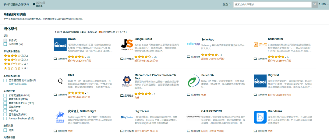 亚马逊后台-合作伙伴网络-查找应用程序和服务