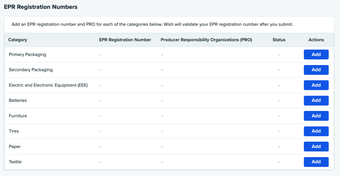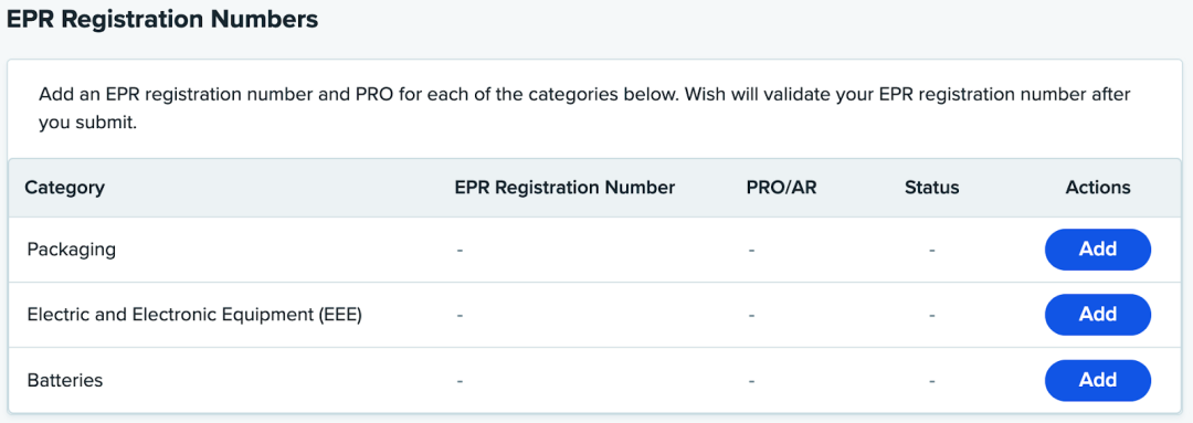 产品的卖家须在2022年7月1日前向 Wish 提供 EPR 注册号和相关的生产者责任组织 (PRO) 信息。