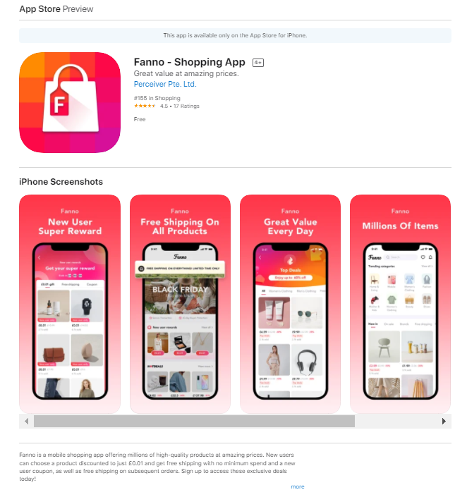 字节跳动官方曾表示:“Fanno是一款在探索初期的电商产品,且向全球用户提供高性价比的综合品类。”