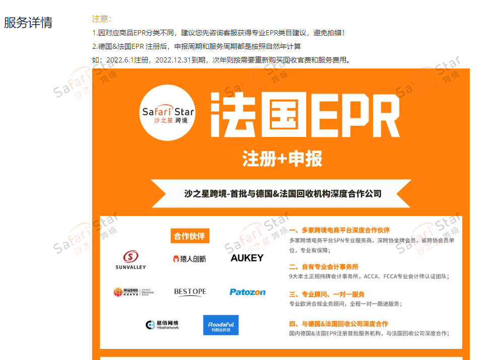 沙之星跨境为广大卖家提供德国&法国EPR注册、VAT注册、商标注册、海外公司注册等跨境财税合规业务。我们是首批与德国&法国回收机构深度合作的公司,拥有九大本土正规持牌会计事务所,ACCA、FCCA专业会计师认证团队,专业欧洲合规业务顾问为您提供全程一对一跟进服务,根据您的产品帮助你分析具体需要注册的EPR种类,为你提供专业的EPR 产品合规建议!