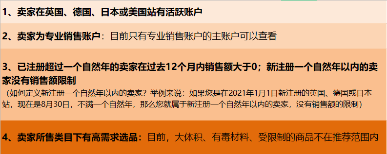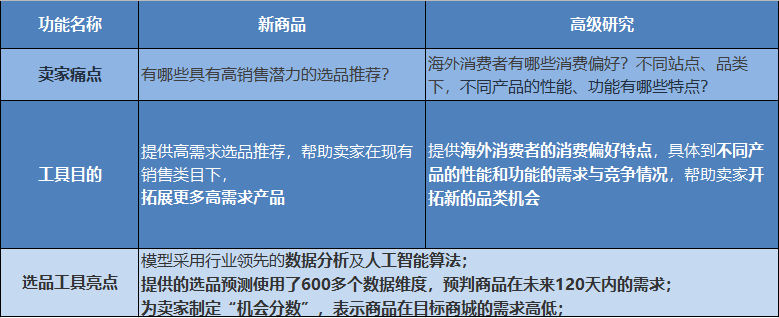 为美国站卖家开放,通过大数据及人工智能算法个性化预测卖家在北美站所售产品的全球需求。目前通过此工具,卖家可以查看英国、德国和日本站的销售机会。即借助选品工具,卖家就可以查看自己在美国站所销售的产品,在英国、德国、日本站分别的销售机会;