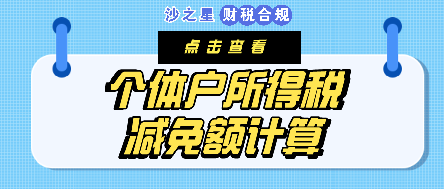 【例】纳税人吴某经营个体工商户D,年应纳税所得额为1200000元(适用税率35%,速算扣除数65500),同时可以享受残疾人政策减免税额6000元,那么吴某该项政策的减免税额=[(1000000×35%-65500)-6000×1000000÷1200000]×(1-50%)=139750元。