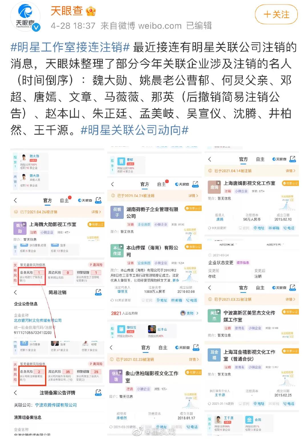 受郑爽涉嫌“阴阳合同”事件影响,一夜之间,明星的工作室在“疯狂”注销!这不是此地无银三百两吗?!