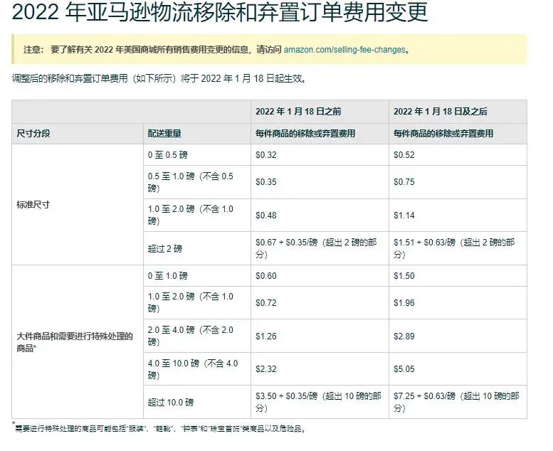 物流费在我们昨天的文章中就公布了具体的变更细节,但今天要说的是亚马逊物流移除和弃置订单费用的变更。