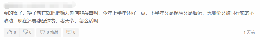这是半年前的费用变更,当时只平均涨价了约50%