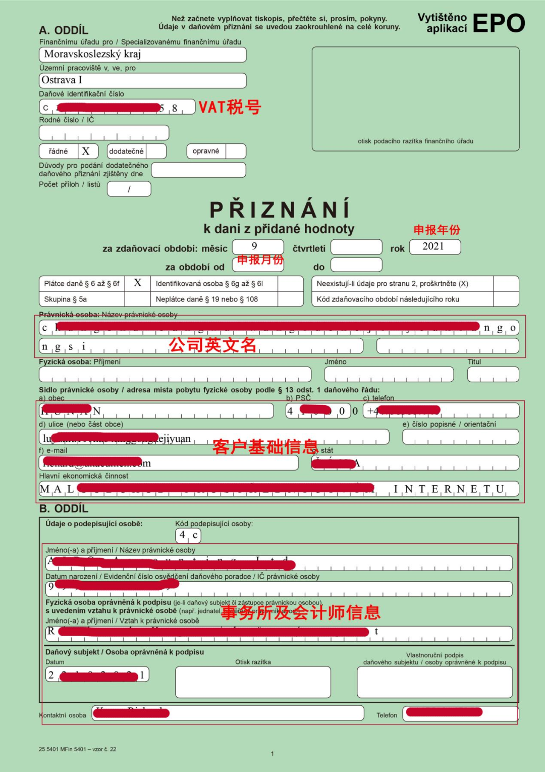 除捷克共和国的增值税申报表外,公司可能还需要提交额外的统计信息。