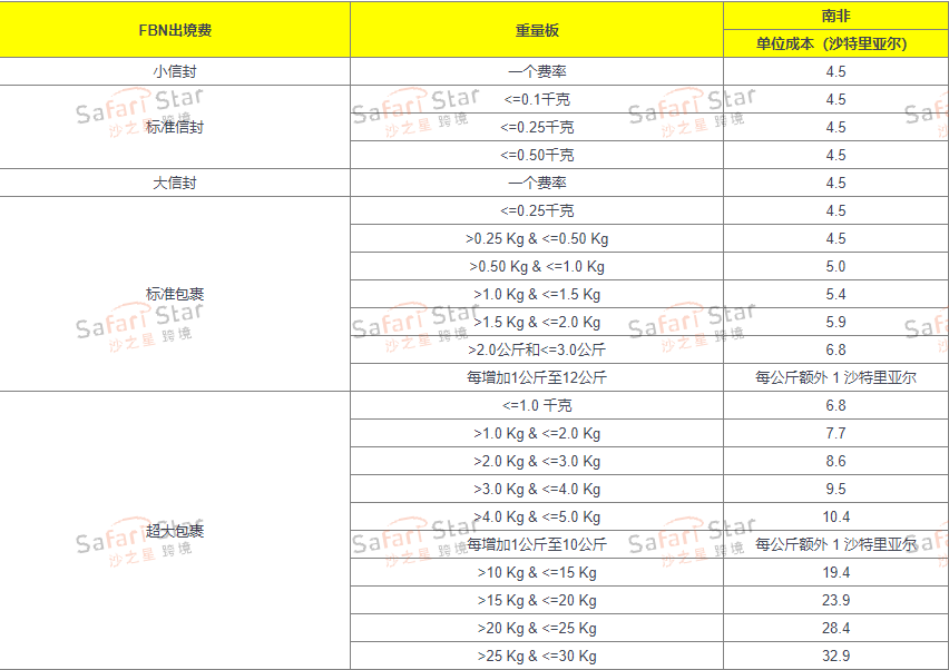 ,使用FBN配送的商品将使用以下修改后的费用。FBN出境费的计算与
