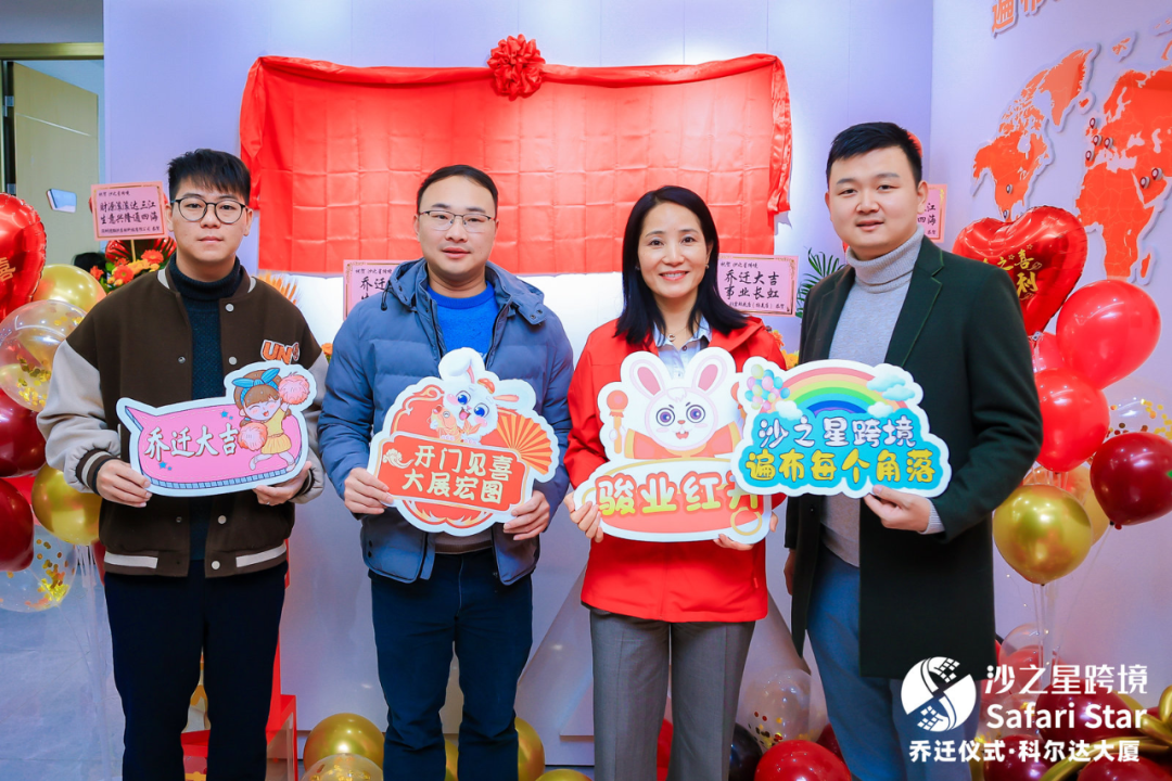 2022年12月3日,沙之星跨境深圳分公司全体同事在全新的办公场所举行了简单而隆重的乔迁仪式。