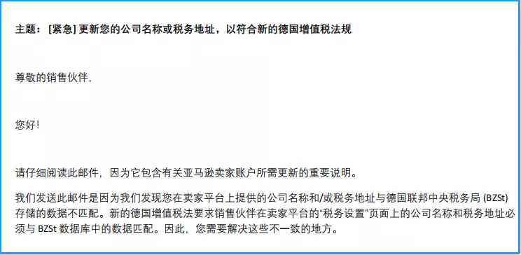 🔻发送邮件时务必用 自己亚马逊注册的邮箱 发送邮件,并且注明您的卖家ID, 最好再附上您的VAT证书。