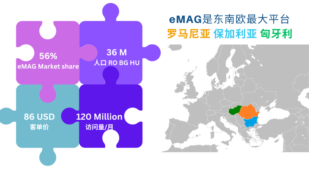 而成立于2001年的eMAG电商平台,是罗马尼亚最大的平台,堪称东南欧“淘宝”,占据了罗马尼亚50%的市场。