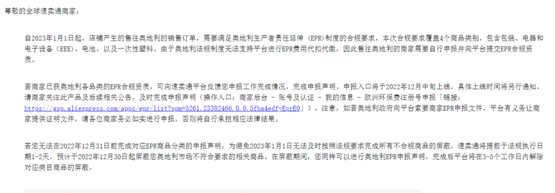 沙之星跨境是亚马逊等多家电商平台认证的EPR合规服务商,可以给卖家提供奥地利EPR注册-申报的一条龙服务。如果你还不清楚自己的产品需要注册哪些EPR?关注公众号后台回复“奥地利EPR”,一对一专业指导!