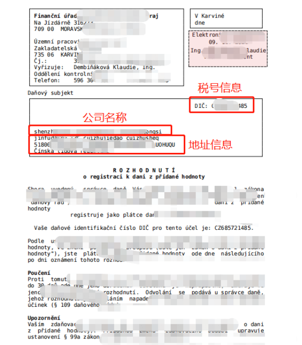2、卖家在捷克使用了当地的仓库,不管是第三方海外仓还是自建仓,只要在捷克有仓储,就必须要注册捷克的VAT税号;