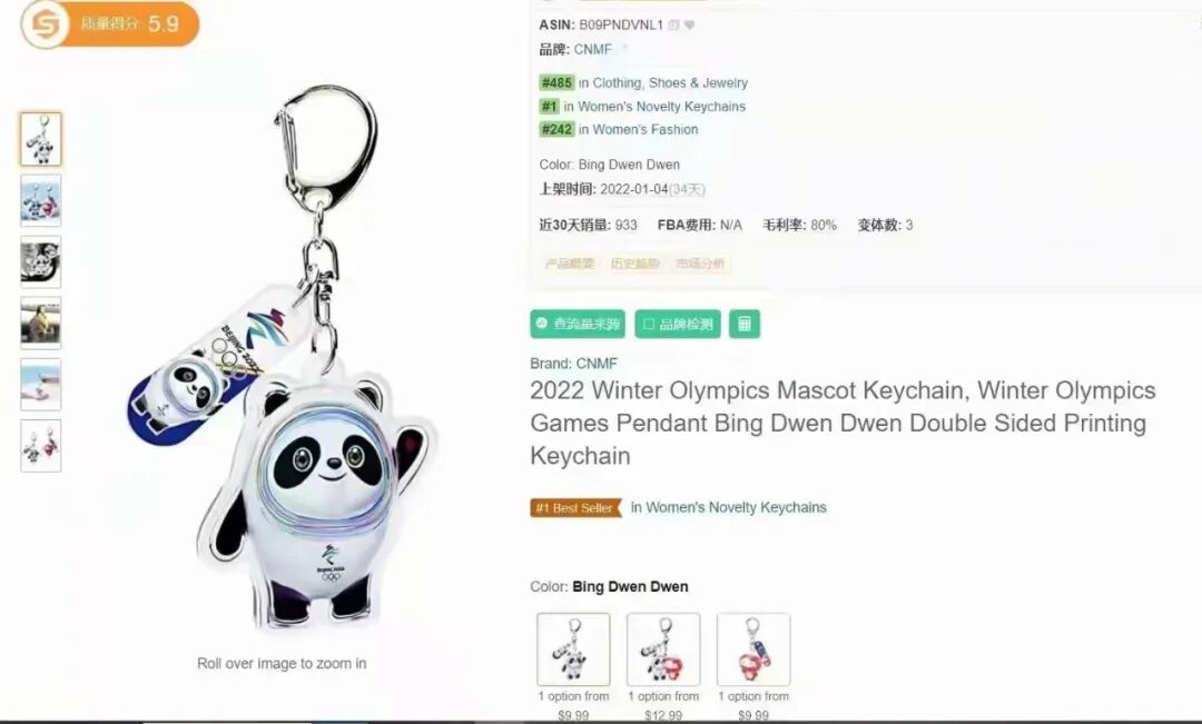 #BingDwenDwen成为热议话题,亚马逊各个站点也上架了大量冰墩墩钥匙扣等周边产品,其中有一款冰墩墩钥匙扣在短时间内登顶该类目best seller,并迅速售罄。