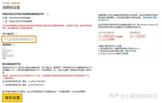 2、选择“是,我有义务在日本申报消费税” > 添加“JCT登记号”;