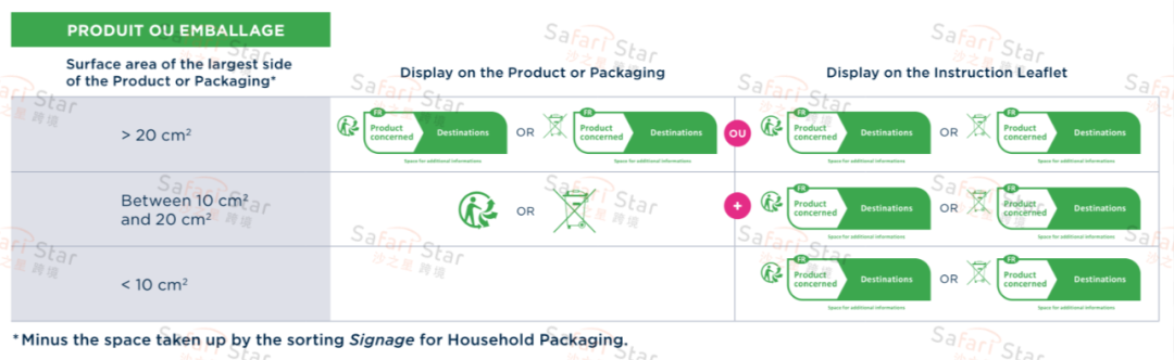 如果产品尺寸在10-20平方厘米之间,则只需要将Logo处的Triman标或者划X垃圾桶图标印在产品上,将完整的Triman标志展示在网站上;