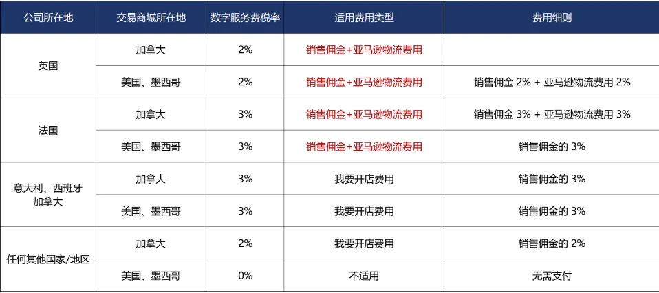 特别注意:公司所在地为英国和法国的情况下,数字服务费需要扣两次:佣金x费率 + 亚马逊物流费x费率。